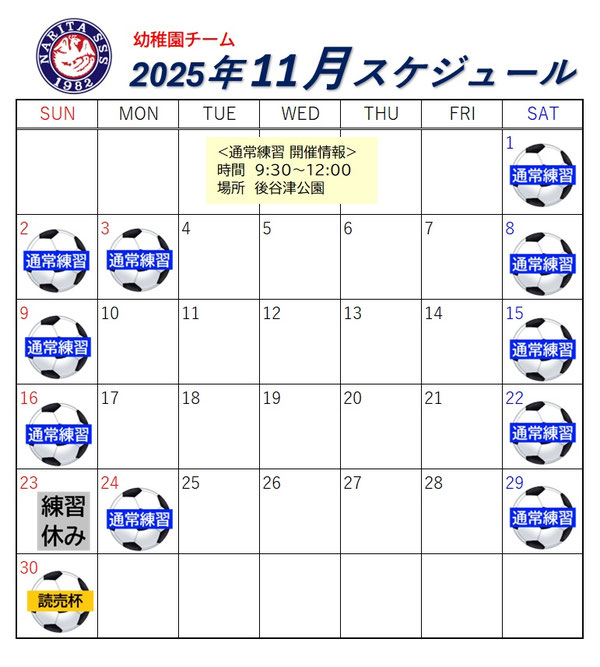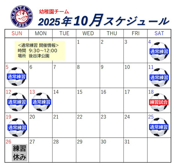 ※雨天中止や急遽の遠征試合の場合もありますのでご了承ください。